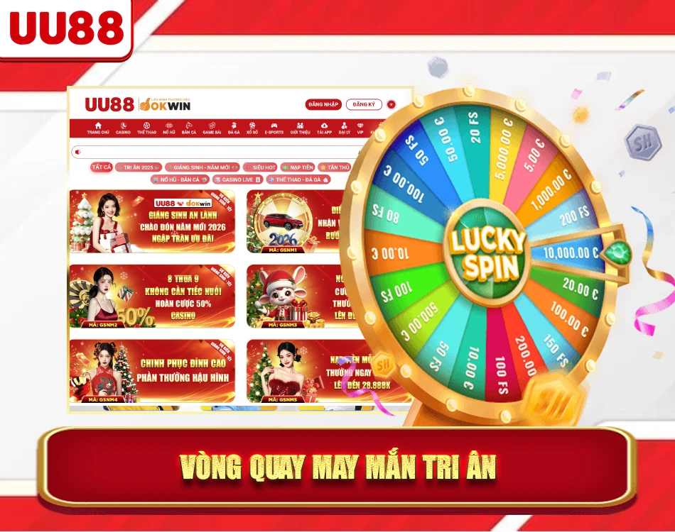 UU88 tổ chức chương trình vòng quay may mắn nhằm tri ân hội viên trong thời gian diễn ra sự kiện. Người tham gia có cơ hội nhận nhiều phần thưởng giá trị thông qua cơ chế quay ngẫu nhiên mỗi ngày.